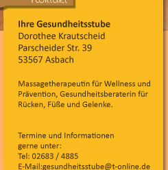 In Ihrer Gesundheitsstube biete ich Ihnen in einer ruhigen und angenehmen